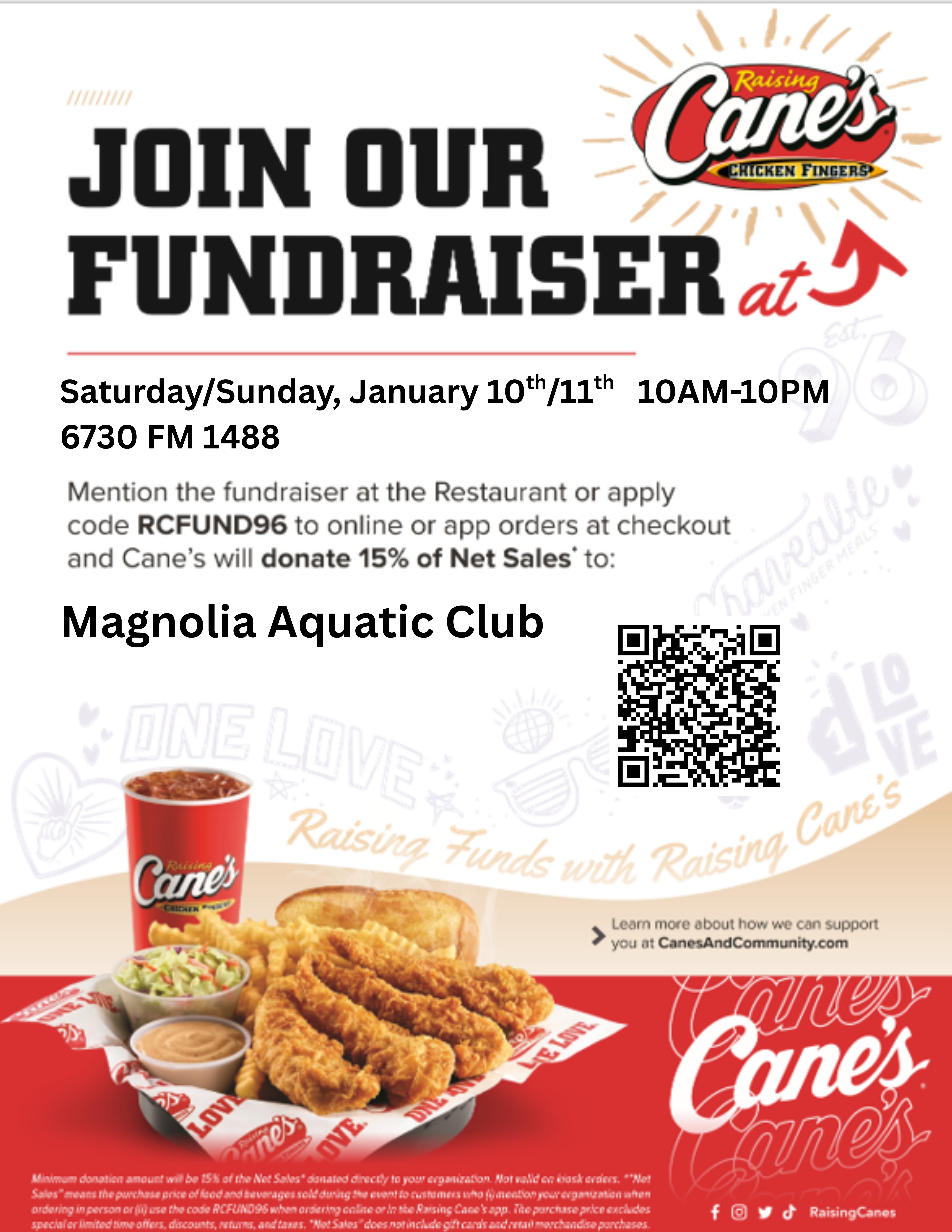 Raising Cane's Spirit Fundraiser - Sat Jan 10th & Sun 11th - 10am - 10pm